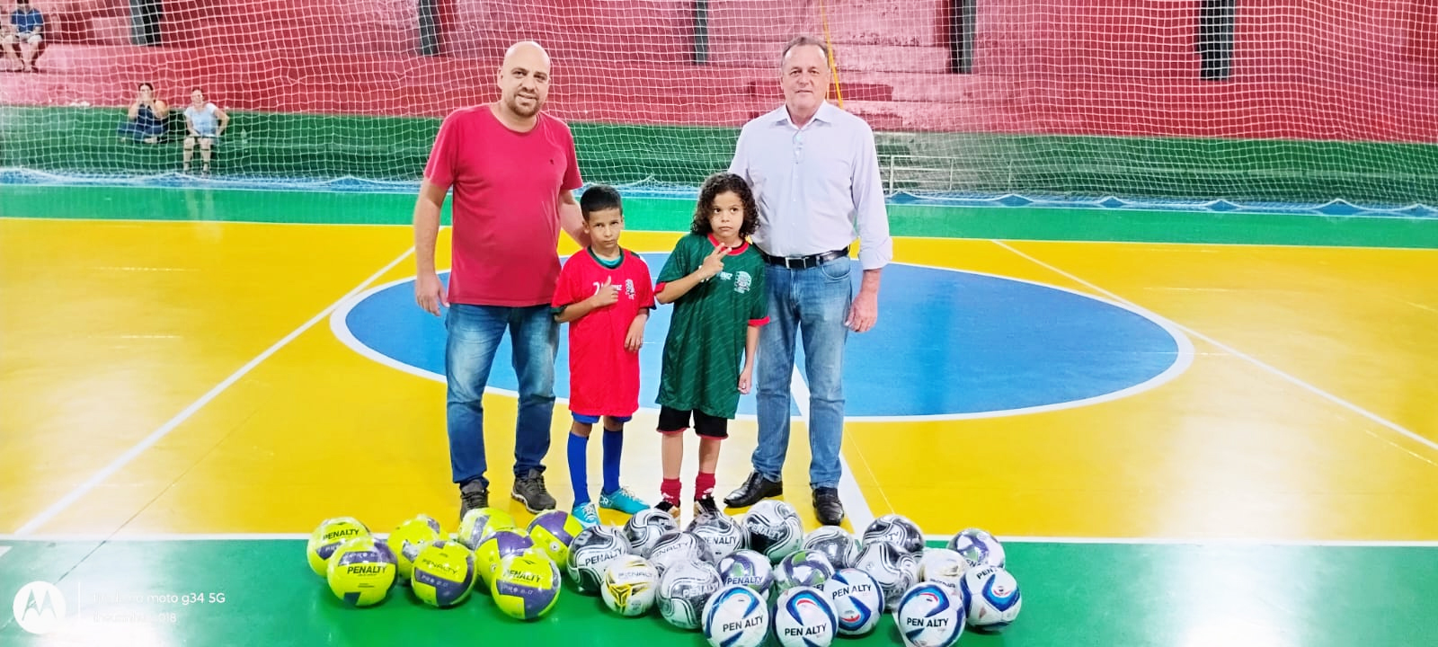 Na entrega dos materiais esportivos adquiridos esteve presente além do secretário Fausto Tavoloni também o prefeito José Andriotti.