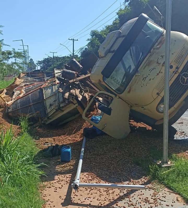 Na manhã desta quarta-feira (2), um caminhão carregado com amendoim tombou na vicinal que liga Tupã a Arco-Íris após o motorista perder o controle do veículo.Felizmente, o condutor não sofreu ferimentos. A carga ficou espalhada pela pista, causando a interdição parcial da via.