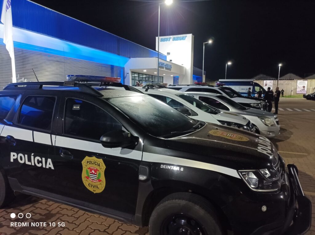 Para cumprimento das diligências a operação contou com apoio de policiais civis das Delegacias Seccionais de Adamantina, Dracena, Assis, Presidente Venceslau, Presidente Prudente e DEIC de Presidente Prudente, totalizando 112 Policiais Civis e 30 viaturas policiais. (Por: Deinter-8)