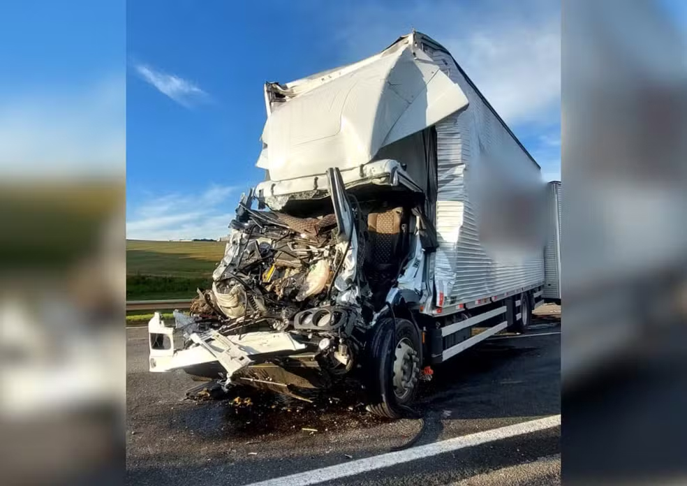 Segundo a concessionária que administra o trecho, acidente foi às 15h44, no km 129. O motorista da carreta foi socorrido com várias fraturas após bater atrás do outro veículo. A cabine da carreta ficou destruída. O motorista do outro cmainhão não se feriu.