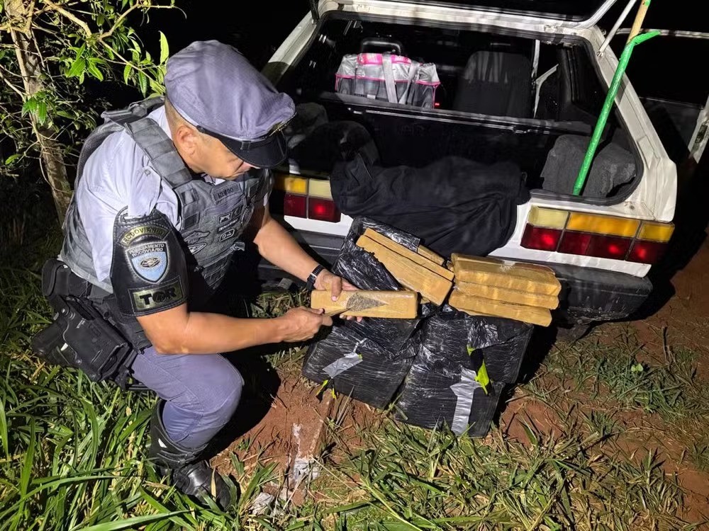 Duas pessoas fugiram, nesta quarta-feira (16), após transportar mais de 50 quilos de maconha em um carro no km 399,500 da Rodovia Assis Chateaubriand (SP-425), em Martinópolis.