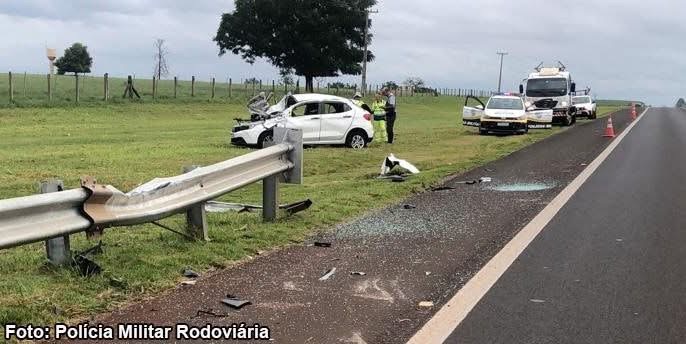 Acidente de trânsito ocorrido na manhã deste domingo, dia 20, na Rodovia Raposo Tavares (SP-270), no município de Rancharia, resultou na morte de uma mulher de 59 anos e ferimentos em outros dois homens, esposo e filho da vítima fatal. O choque contra defensa metálica da rodovia aconteceu no quilômetro 508 e foi registrado por volta das 08h50 pela Polícia Militar Rodoviária.