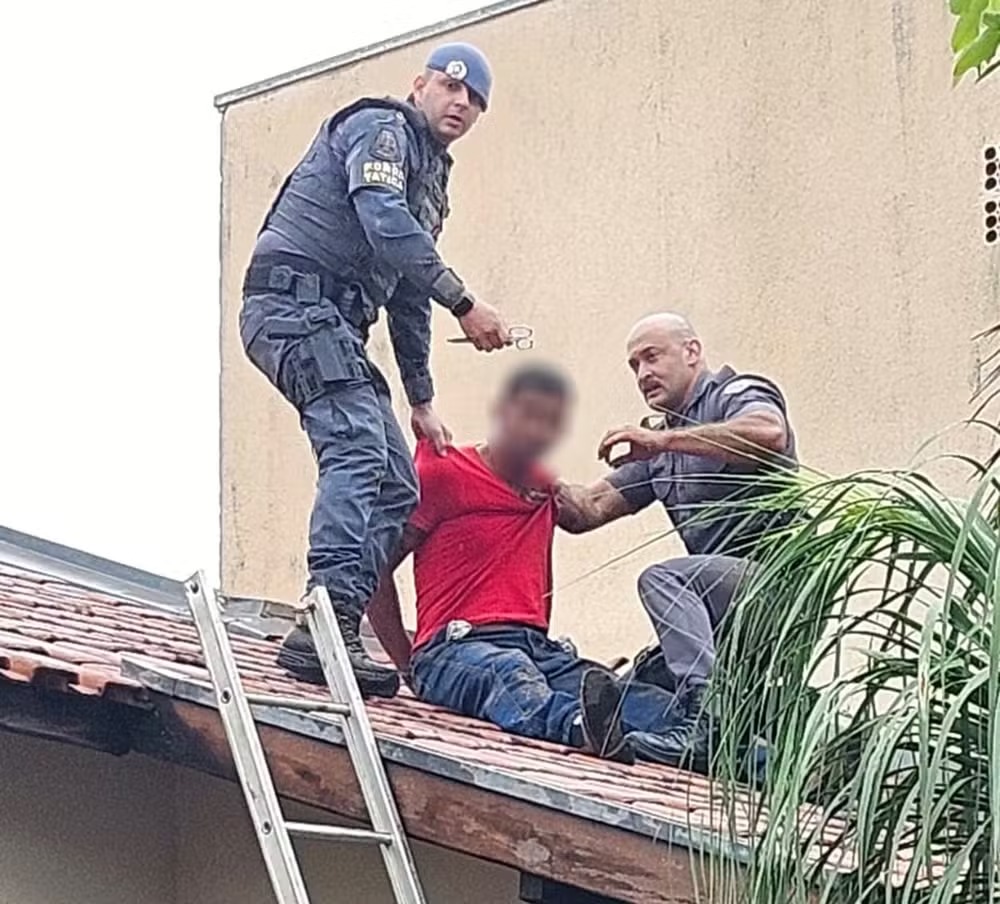 Durante a perseguição policial, para não ser pego, o homem pulou muros e telhados de várias residências, mas acabou sendo capturado e preso.