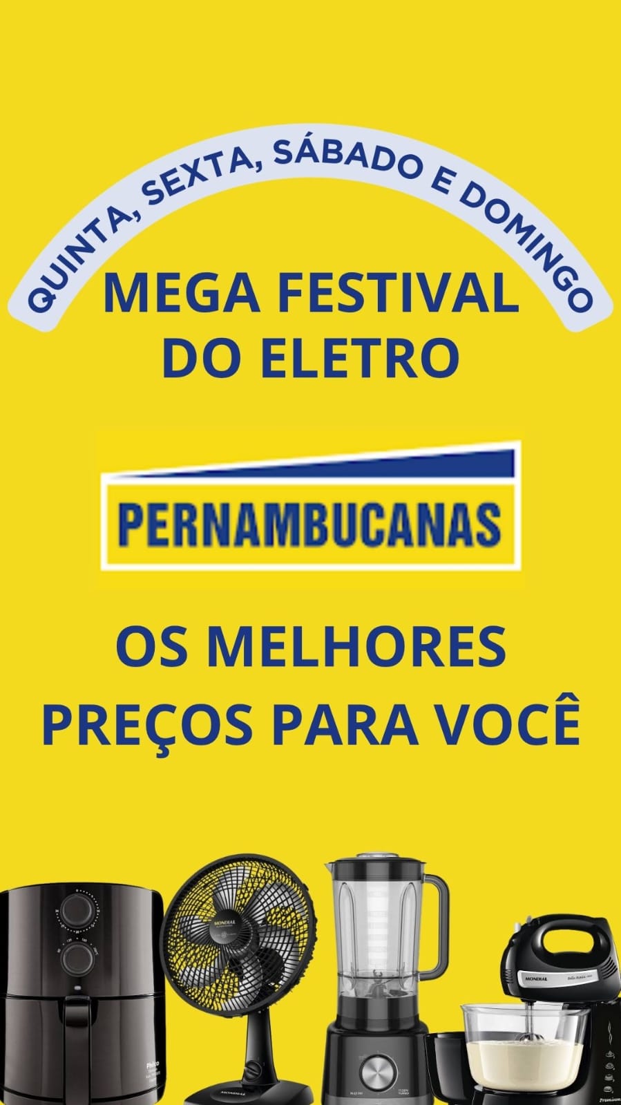 Entre os destaques da campanha estão fritadeiras elétricas, ventiladores, liquidificadores, batedeiras e muitos outros itens essenciais para o dia a dia, todos com preços e condições facilitadas de pagamento.