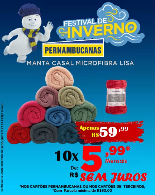 E não para por aí: além da linha de eletro portáteis, a loja também oferece uma promoção imperdível em mantas de casal em microfibra, ideais para o outono/inverno, com a qualidade e conforto já conhecidos da Pernambucanas.
