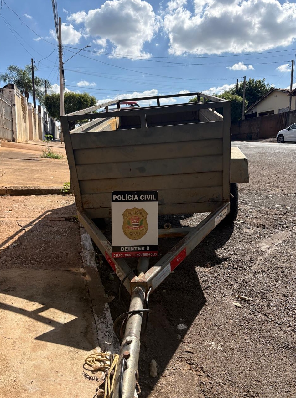 A Polícia Civil do Estado de São Paulo, por intermédio da Delegacia de Polícia de Junqueirópolis, recuperou, nesta quarta-feira (21), um reboque veicular, popularmente conhecido como “carretinha”, avaliado em aproximadamente R$ 3.500,00. A ação ocorreu no curso da investigação de um caso de apropriação indébita, registrado no dia 8 de maio, no município.
