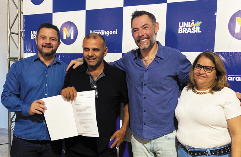 Na foto registrada durante o evento, aparecem juntos o ex-prefeito Roger Gasques, o vereador Donizete Dony, o deputado Fernando Marangoni e Eliana Lopes — simbolizando a união de forças em prol de melhorias para o município de Pacaembu.