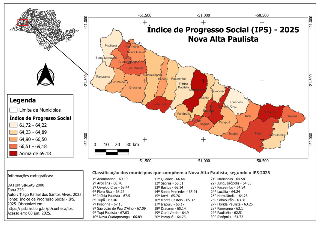 Mapa 1: Índice de Progresso Social (IPS) – 2025 – Nova Alta Paulista