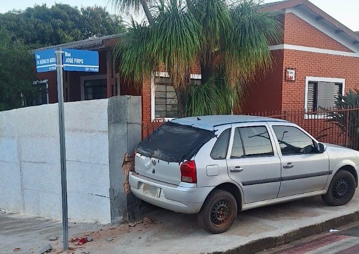 No local, os policiais encontraram o veículo VW Gol, placas do município de Pacaembu, colidido contra a grade de ferro e o muro de uma residência na Rua José Firpo.