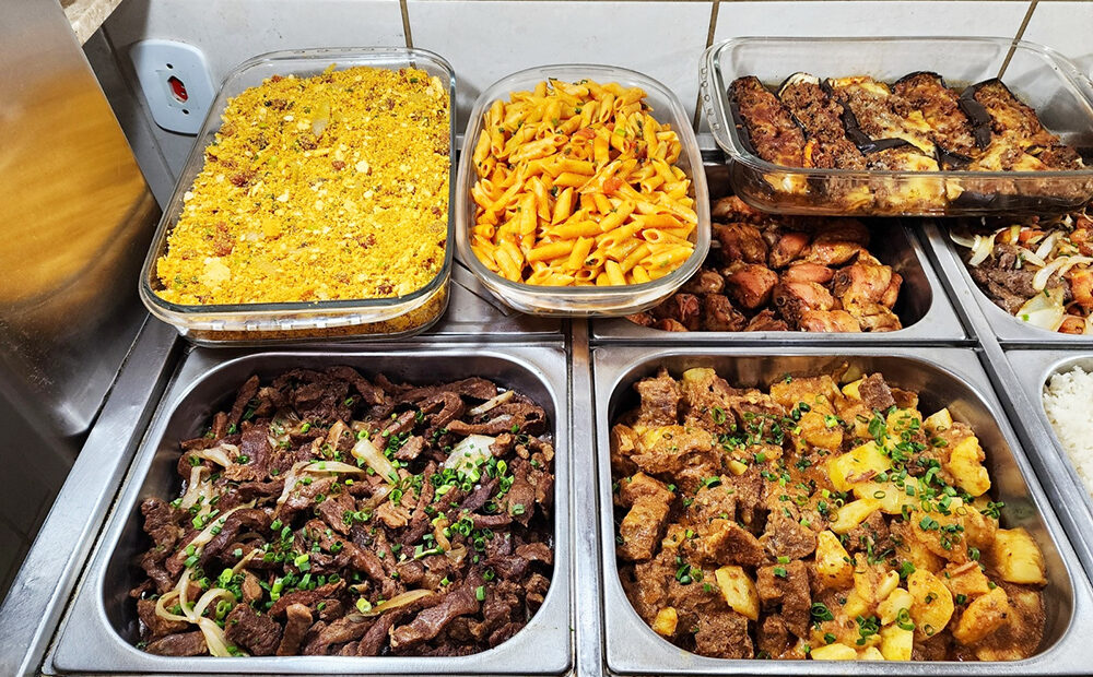 Para quem prefere comodidade, o restaurante também oferece marmitas com a mesma qualidade do buffet, sempre com ótimo custo-benefício.