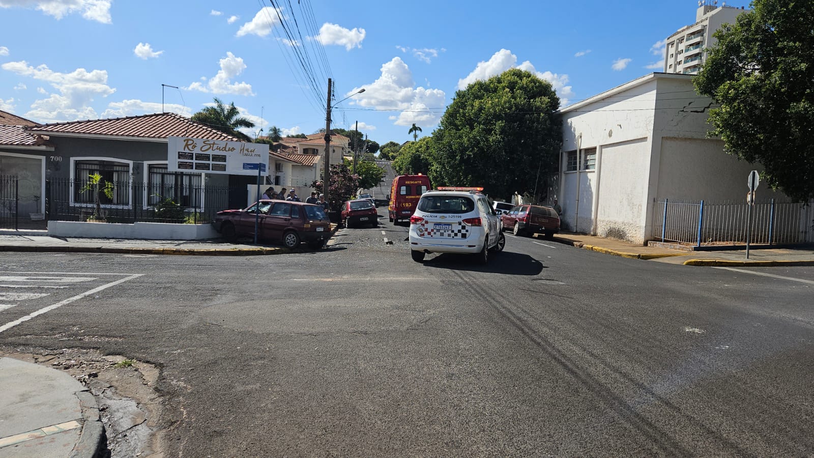 Um veículo Fiat Uno placas Mercosul, dirigido por um homem, fazia o sentido centro-bairro pelo Edison que é via preferencial, quando teve sua frente interceptada por um Ford Fiesta placas de Dracena dirigido por uma mulher que fazia o sentido centro-bairro pela Euclides.