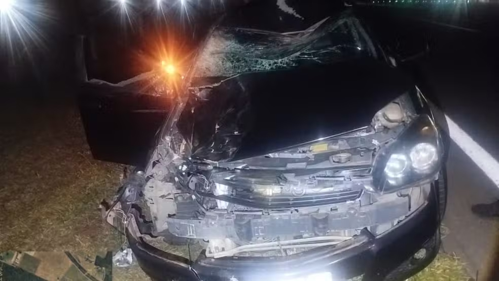 O motorista do carro não teve tempo de desviar e atingiu o animal que atravessava a pista, junto com um grupo de outros cavalos.