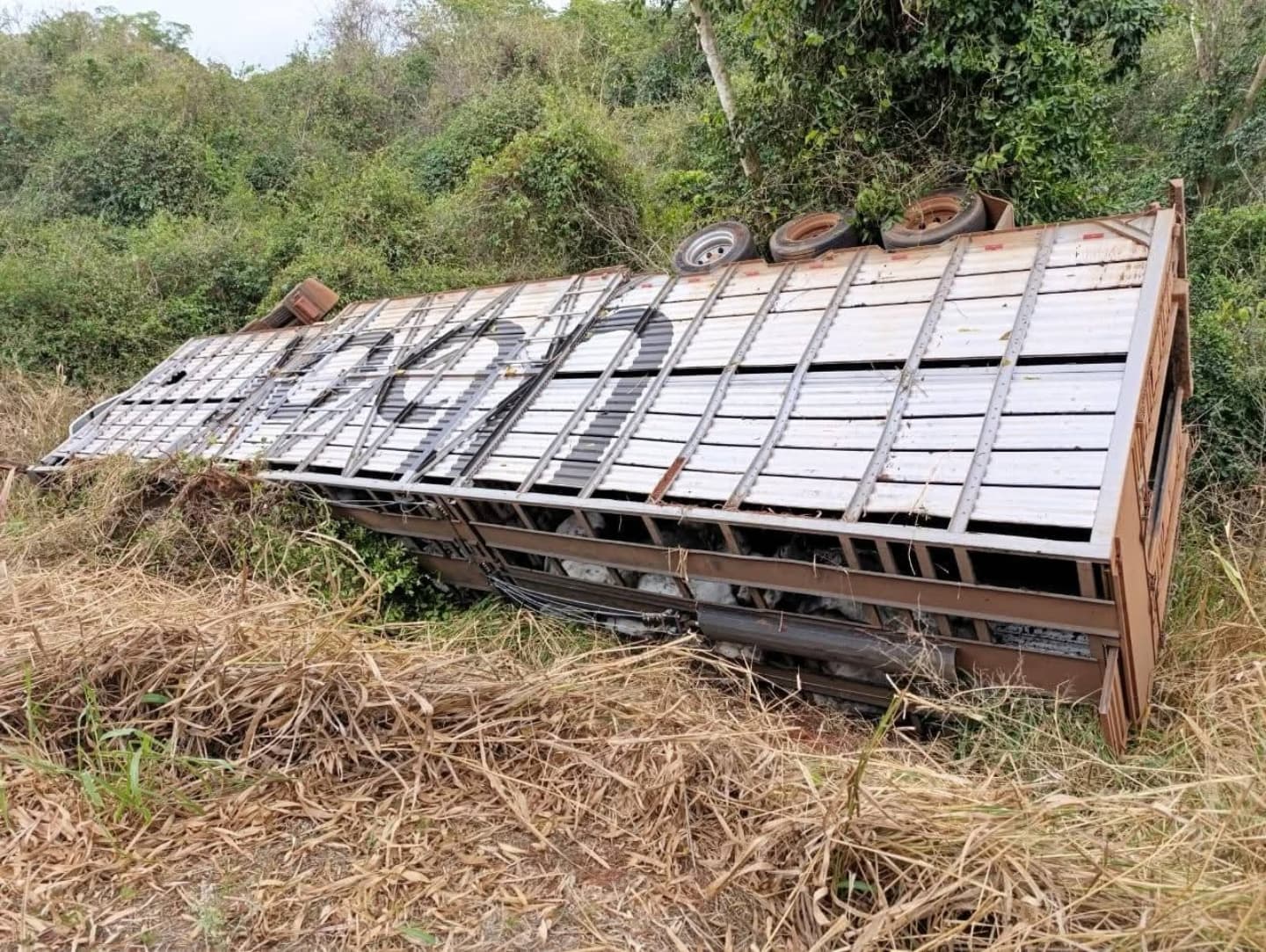 A carga sofreu dispersão no local, exigindo apoio para o controle dos animais.