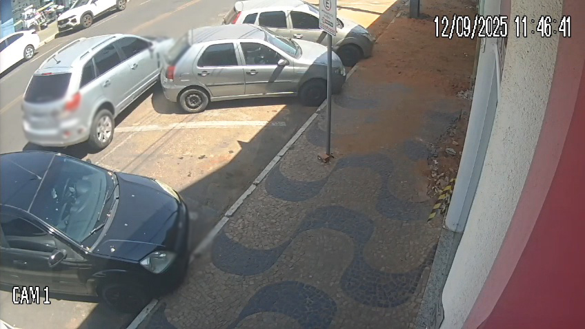 Por volta das 11h45, imagens do circuito de segurança de uma empresa registraram o momento em que um Chevrolet Captiva, em marcha ré, avançou e atingiu automóveis que estavam estacionados em ângulo de 45 graus.