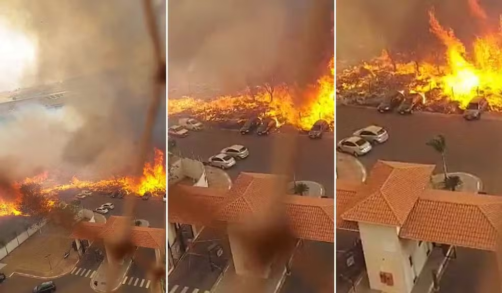 Um incêndio em uma área de mata ao lado da Rodovia Luiz de Queiroz (SP-304), em Santa Bárbara d’Oeste (SP), avançou em direção ao bairro Jardim Firenze, neste domingo (21). Um vídeo mostra o fogo atingindo carros estacionados na entrada de um condomínio residencial – assista acima.