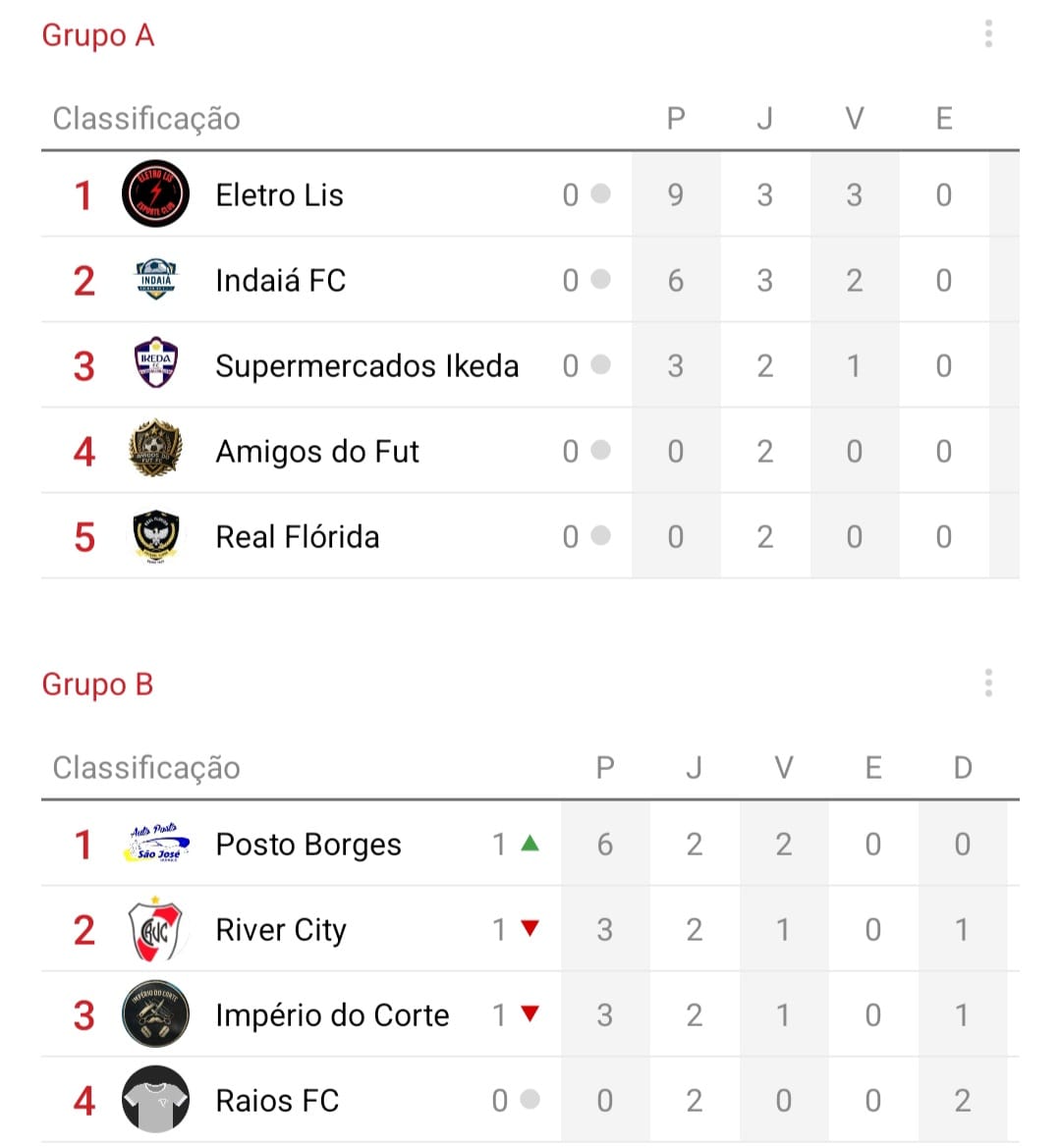 Para encerrar a rodada o Auto Posto Borges/Escritório Cruzeiro do Sul venceu por 5 a 1 o Império do Corte/Chicão Frutas. Com o resultado o grupo B se embolou de vez, onde 3 equipes possuem chances reais de passar de fase. Os gols da partida foram marcados por Deivid (2 vezes), Der, Dario e Renz, enquanto Claudio marcou para o Império do Corte.