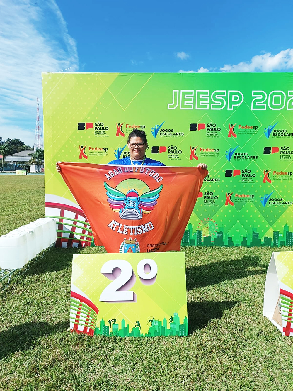 A jovem atleta é aluna da Escola Estadual José Firpo, de Lucélia, e treina pelo Projeto Asas do Futuro, iniciativa desenvolvida no município que tem revelado diversos talentos no atletismo e promovido oportunidades para crianças e adolescentes através do esporte.