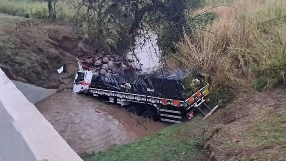 Segundo informações da Agência de Transporte do Estado de São Paulo (Artesp), o motorista perdeu o controle do veículo e não conseguiu frear a tempo, o que fez o caminhão tombar e cair no curso d’água.