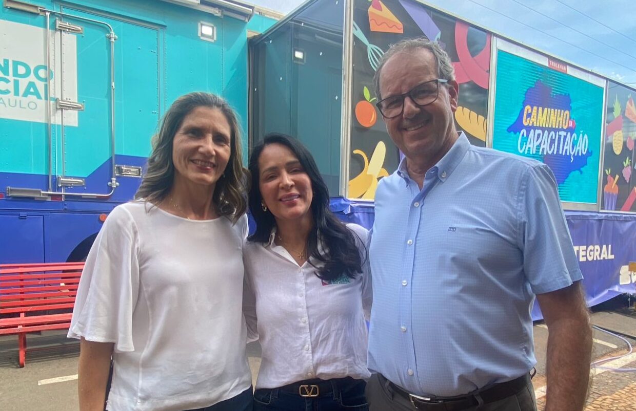 Adamantina recebeu a visita da primeira-dama do Estado de São Paulo e presidente do Fundo Social, Cristiane Freitas, que acompanhou as atividades do programa Caminho da Capacitação. A visita ocorreu na tarde desta quinta-feira (16), nas carretas do projeto instaladas em frente à Biblioteca Pública Municipal, onde são ministrados cursos gratuitos de qualificação profissional através do programa de capacitação estadual.