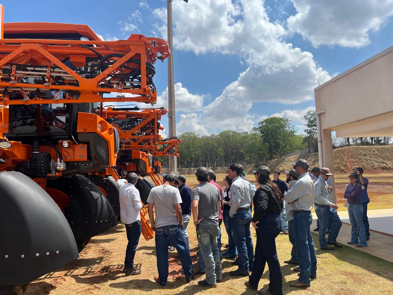 A ação contou com a presença de 20 alunos e três professores, que puderam conhecer de perto as tecnologias aplicadas na pulverização agrícola moderna.
