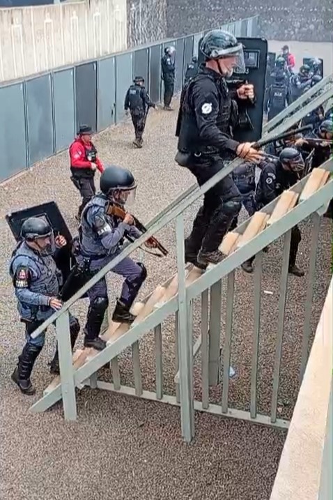 As corporações envolvidas incluíram o Grupo de Intervenção Rápida (GIR) da Polícia Penal estadual, vinculado à Secretaria da Administração Penitenciária (SAP), bem como unidades da Polícia Militar do Estado de São Paulo (PM), com integrantes da Força Tática, do Batalhão de Ações Especiais de Polícia (BAEP) e do patrulhamento aéreo “Águia”.