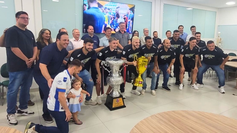 Na manhã desta segunda-feira (17/11) aconteceu uma cerimônia de confraternização em homenagem ao Dracena Tempersul Unifadra, campeão da Liga Paulista de Futsal de 2025.