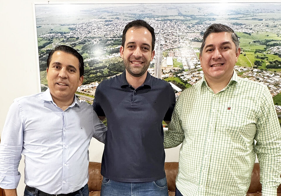 O prefeito de Junqueirópolis, Neto Furini, e o vice-prefeito Daniel Marques receberam na sede da Prefeitura, o assessor parlamentar e ex-prefeito de Dracena, André Lemos.
