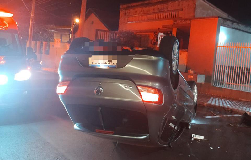 Com a força do impacto, o veículo Gol acabou capotando na via. Apesar da gravidade do acidente e dos danos materiais, o condutor do Gol não sofreu ferimentos.