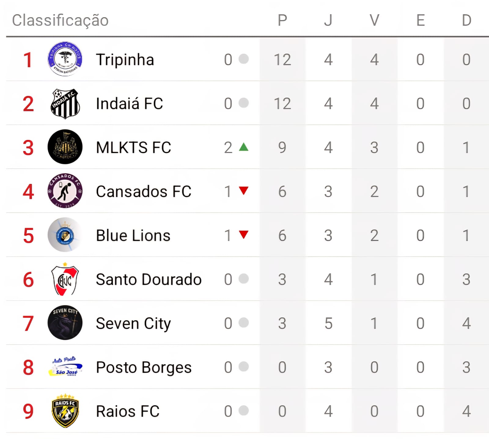 Logo em seguida foi a vez do Tripinha/Atacadão Baterias/Etron/Escritório Cruzeiro do Sul/JapaCar/Danilo Lanches vencer sua partida, desta vez aplicando um 6 a 1 contra o Santo Dourado/Escritório Cruzeiro do Sul/River City. Após um primeiro tempo apertado, onde o placar ficou apenas em 2 a 1, na segunda etapa o Santo Dourado viu seu adversário aumentar a distancia e terminar com um placar bem diferente do que se era esperado no primeiro período. Essa derrota chega em momento ruim para o Santo Dourado que pode ver a classificação afastar cada vez mais de suas mãos, enquanto o Tripinha, ao lado do Indaiá continua sendo os únicos invictos da competição. Os gols da partida foram de Cassio (3 vezes), Fabiano (2 vezes) e Ryan para o Tripinha, enquanto Lima diminuiu para o Santo Dourado.