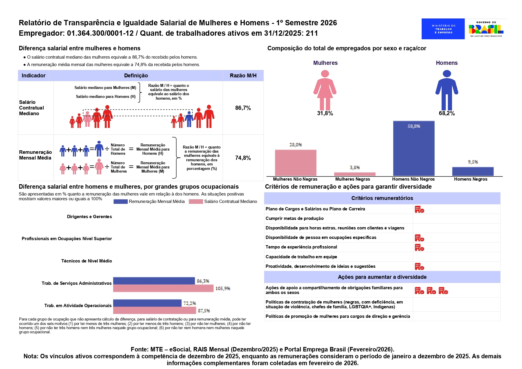 AGROINDÚSTRIA ALIMENTA – Relatório de Transparência e Igualdade Salarial de Mulheres e Homens – 1º Semestre 202623 de março de 2026