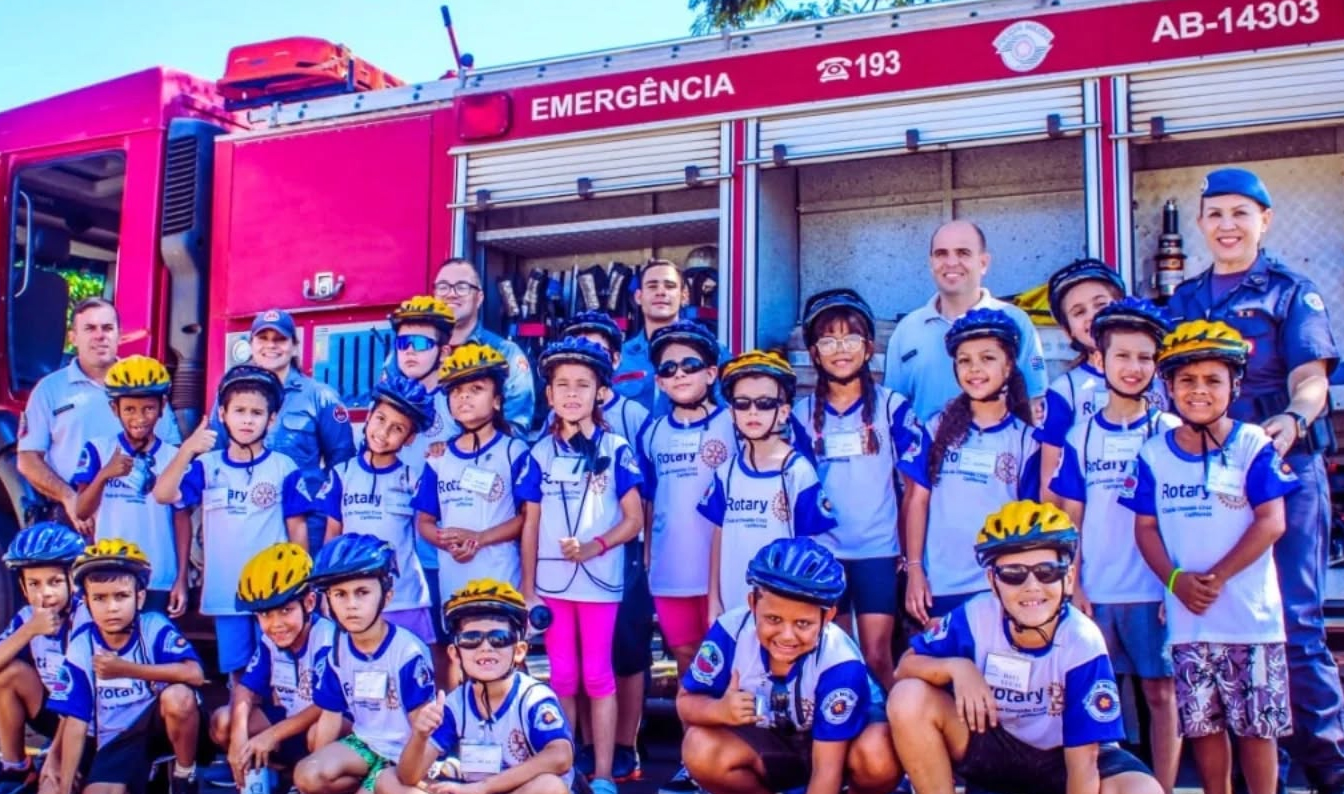 As crianças aprenderam noções de pronto-socorrismo, manutenção básica de bicicletas e conheceram equipamentos dos bombeiros.