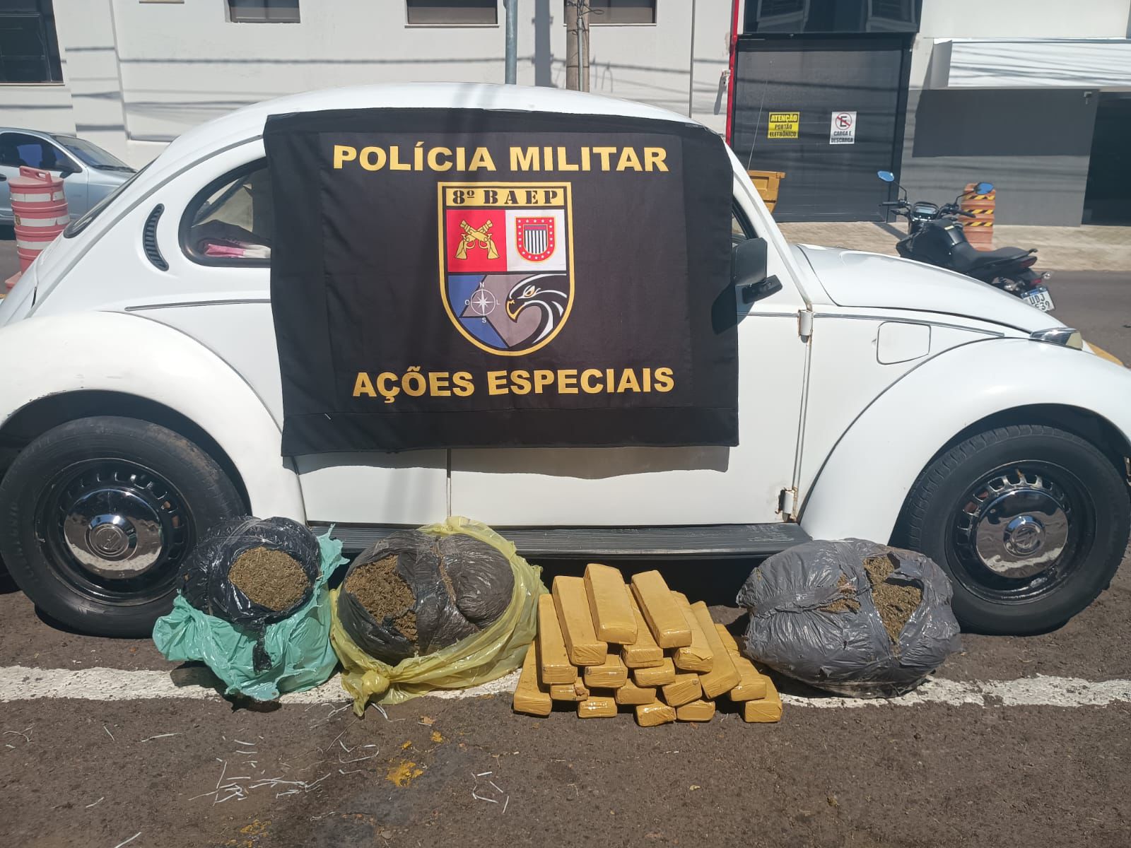 De acordo com a Polícia Militar, os policiais abordaram o carro e, durante a vistoria, localizaram skunk e maconha, além de um celular e dinheiro.